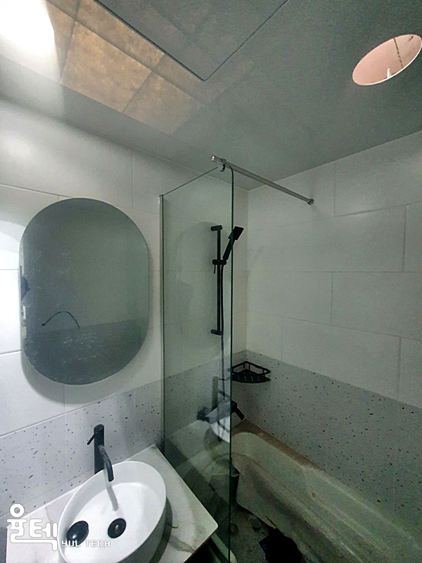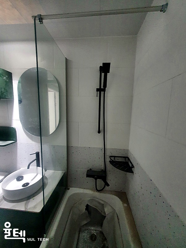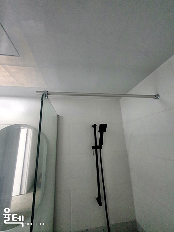 | 특징 | 안전한 접합유리와 상단 픽싱봉 보강대, 화이트골드 무광 프레임이 적용된 파티션 유리 |
