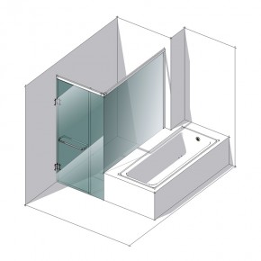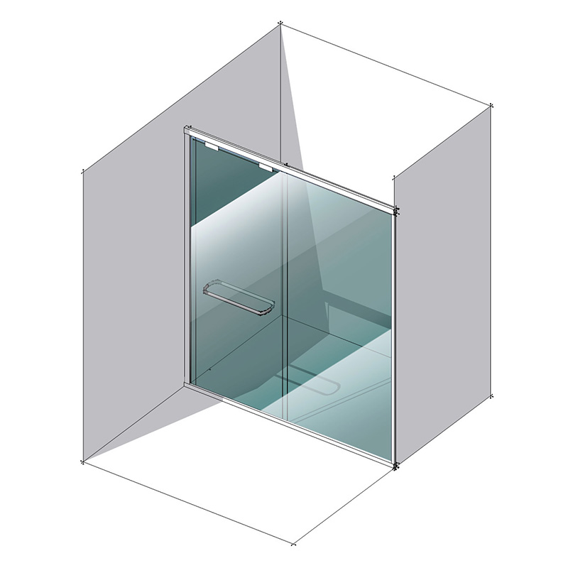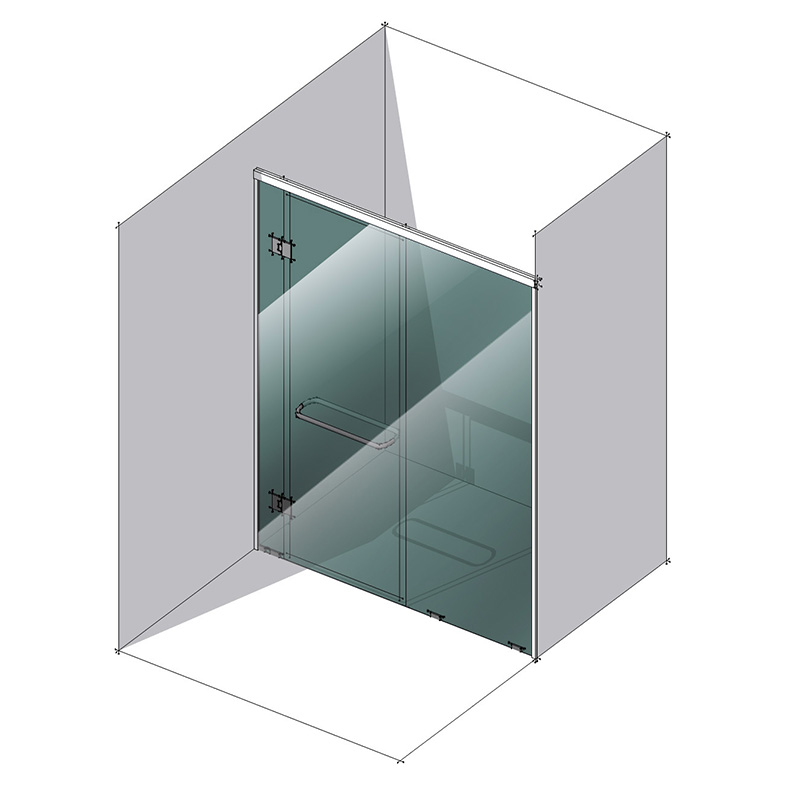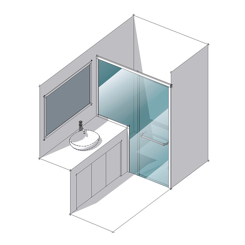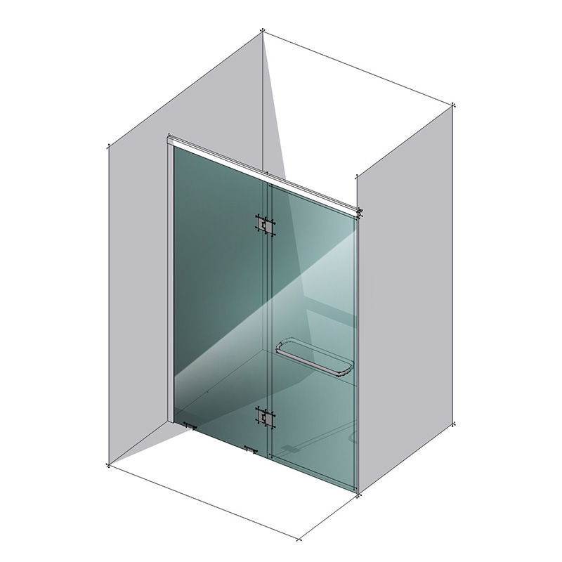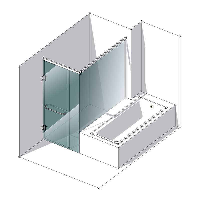 가장 전형적인 ㄱ자샤워부스의 형태이며 벽에 도어를 고정하고 픽스를 ㄱ자로 시공합니다.