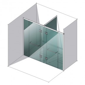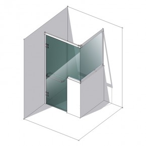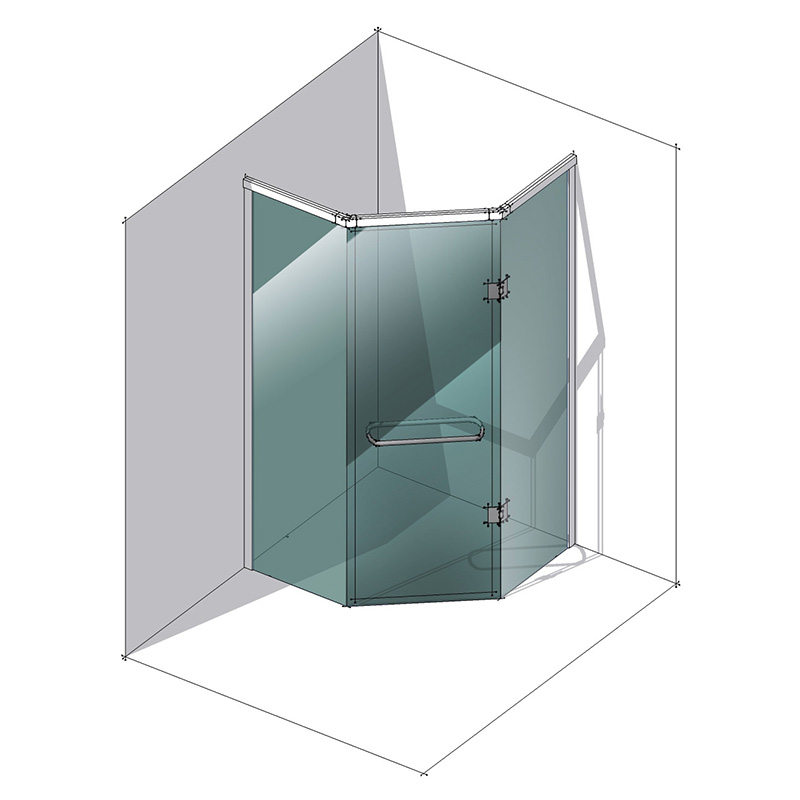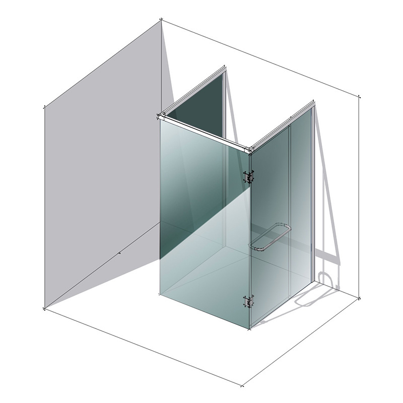 기본적인 ㄱ자 샤워부스의 변형이며 도어가 벽체에 고정할 공간이 마땅치 않을때 주로 이용됩니다.