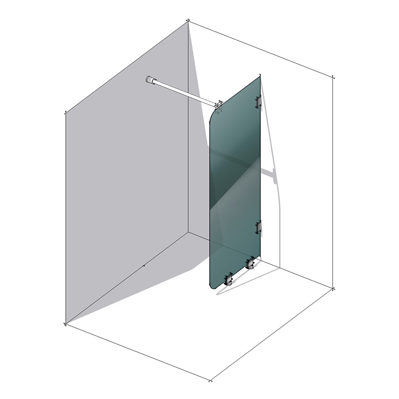 일자샤워부스중 픽스에 도어를 결합시킨 형태의 샤워부스 도어쪽 벽에 마땅히 설치할 공간이 나오지 않을때 주로 사용됩니다.