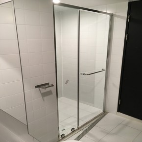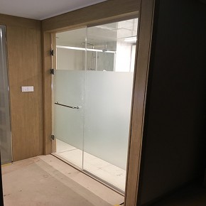 설명 : 일자 샤워부스타입에 잼투바 경첩을 사용하여 물튀김 방지와 고급스러운 외관의 부스타입