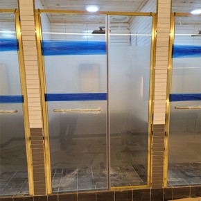 설명 : 고급스러운 골드크롬코팅을 바(Bar)와 손잡이에 적용하여 고급스러운 샤워부스 연출