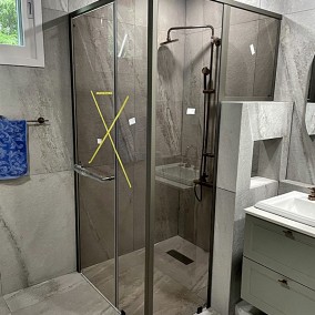 타입 : 2픽스1도어 유리대유리 일자 샤워부스