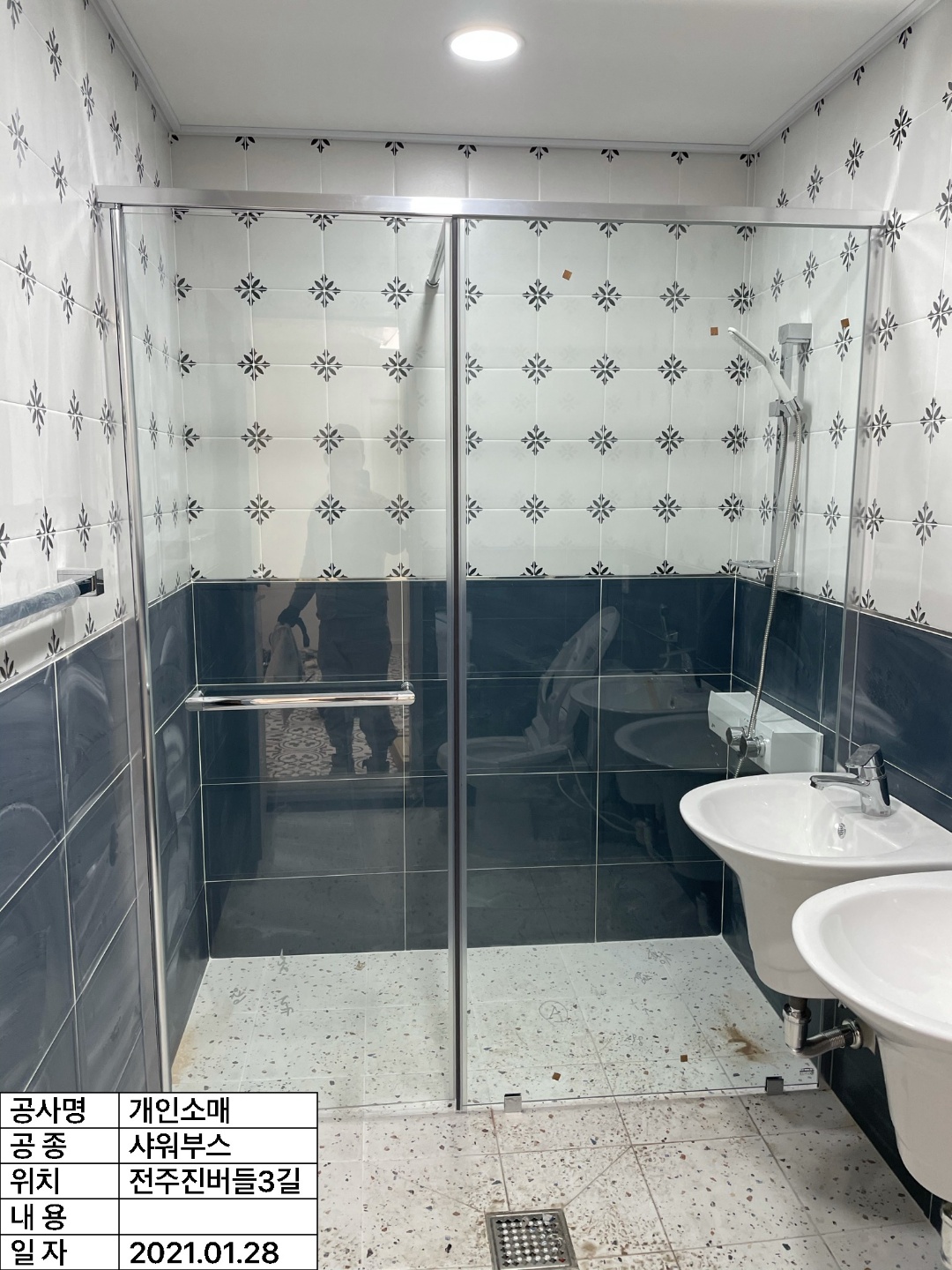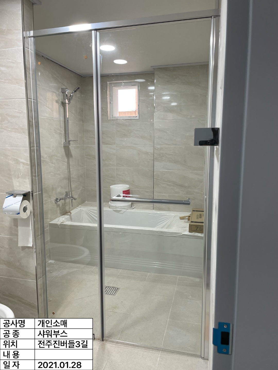 특징 무힌지타입 고급형 일자 샤워부스 2가지 사이즈 시공