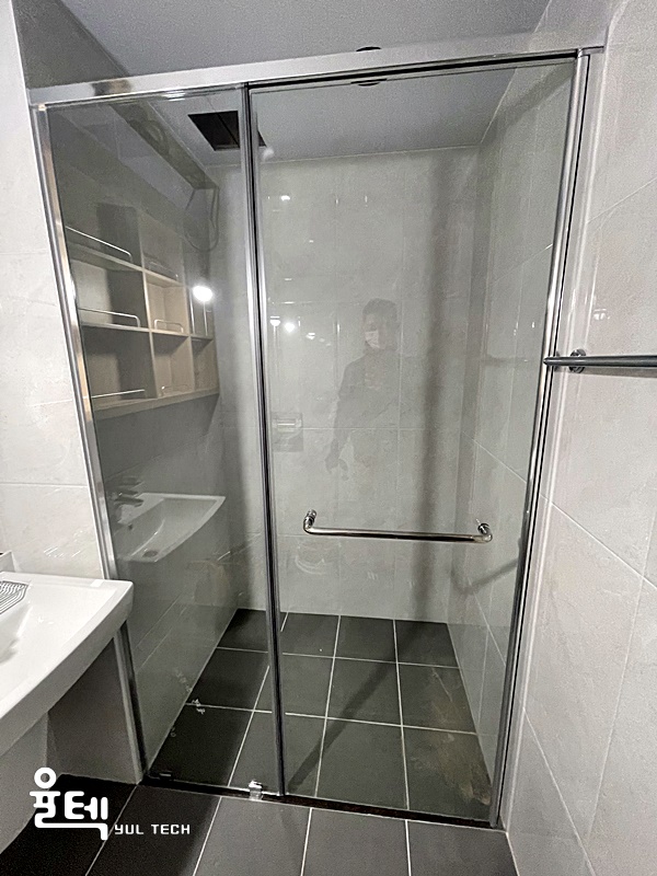 | 특징 | 무힌지 도어방식과 안전한 접합유리가 적용된 샤워부스 |