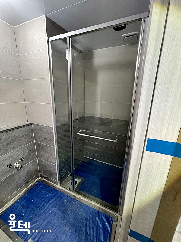 특징 부분 에칭인쇄 처리된 접합유리가 적용된 샤워부스