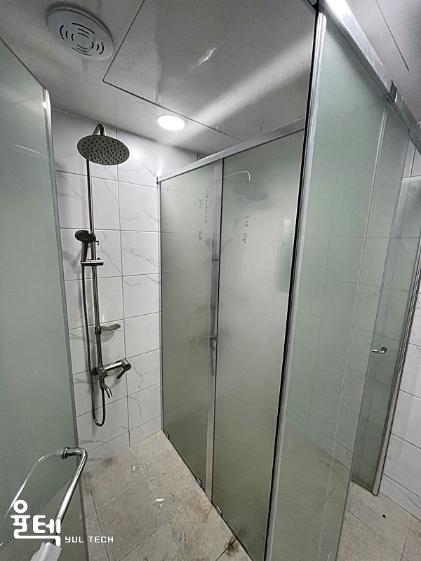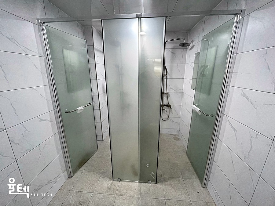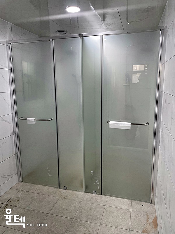 | 특징 | 전체 반투명 에칭 인쇄처리된 접합유리가 적용된 T자 형태 샤워부스 |