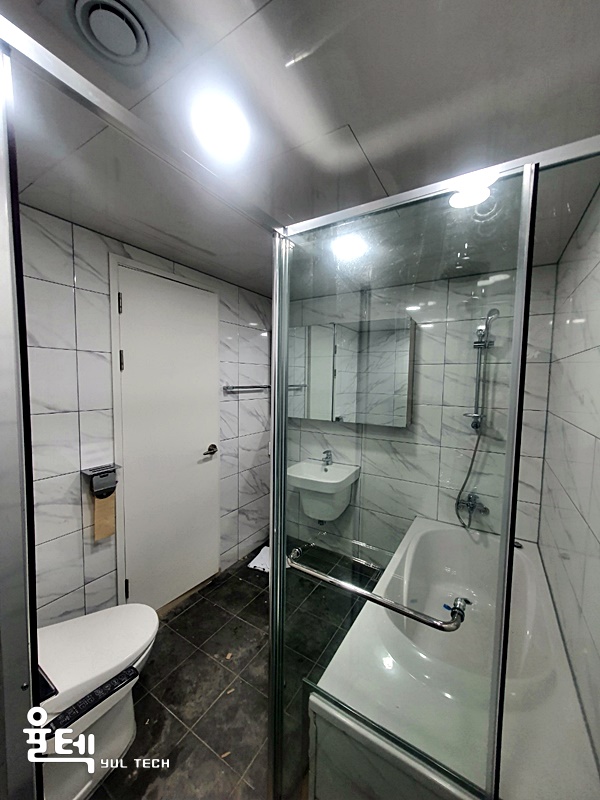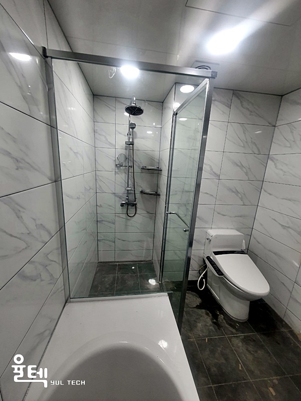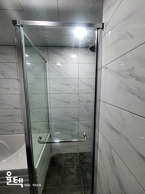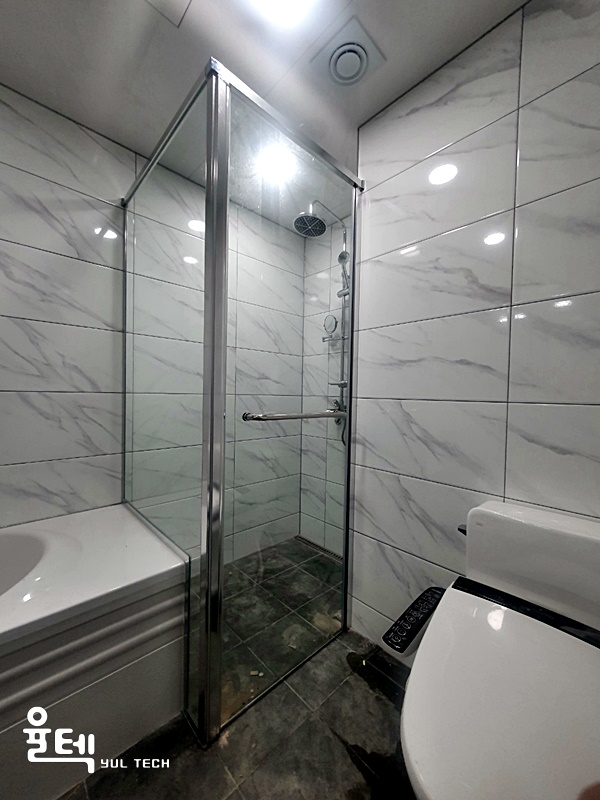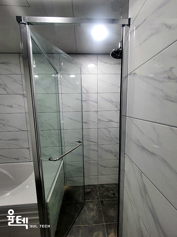 | 특징 | 안전한 이중접합 유리와 무힌지 도어방식이 적용된 욕조와 결합된 ㄱ자 샤워부스 |