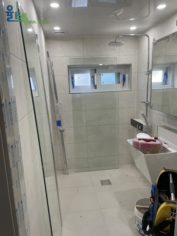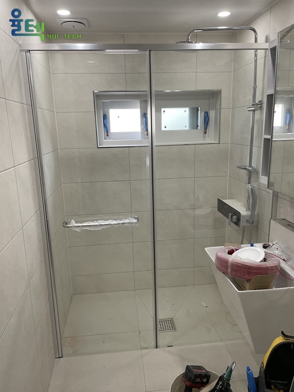특징 무힌지 도어방식과 접합유리가 적용된 샤워부스