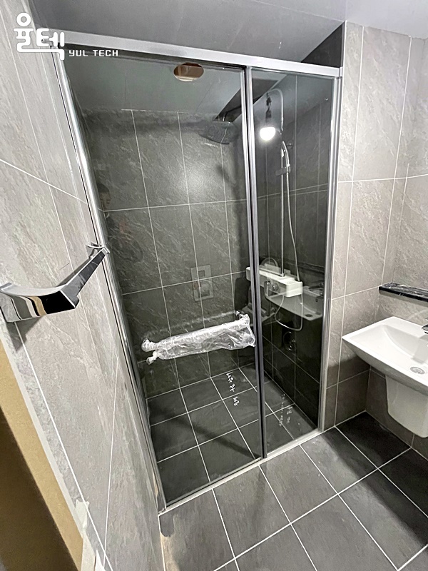 | 특징 | 무힌지 도어유리와 접합유리가 적용된 샤워부스 |