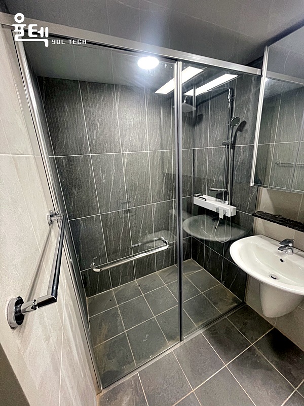 | 특징 | 안전한 접합유리와 무힌지 도어방식이 적용된 일자 샤워부스 |