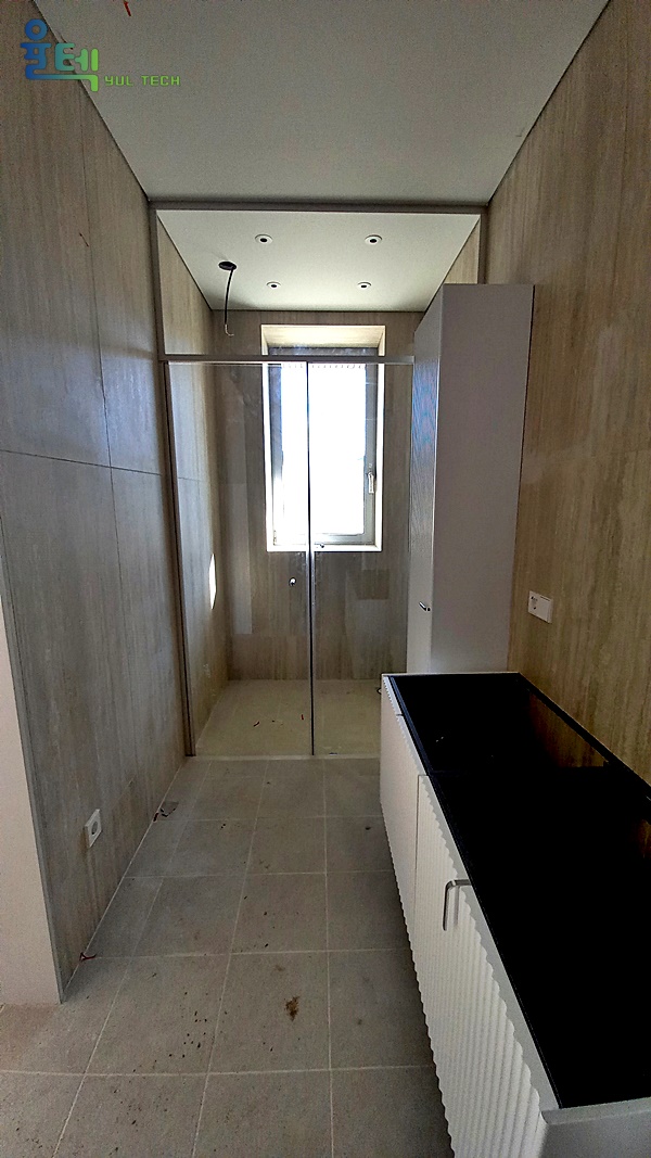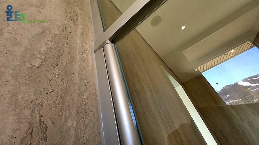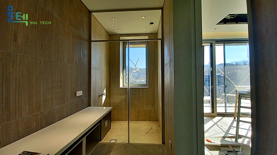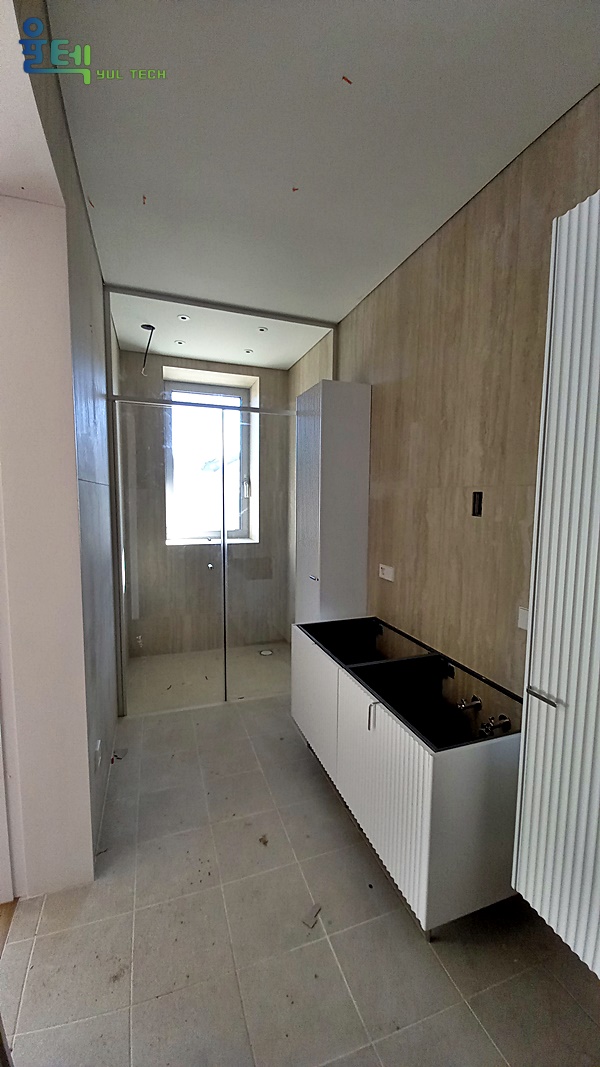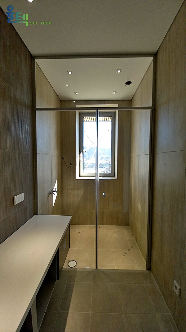 | 특징 | 화이트골드 무광 프레임과 접합유리가 적용된 풀사이즈 샤워부스 |