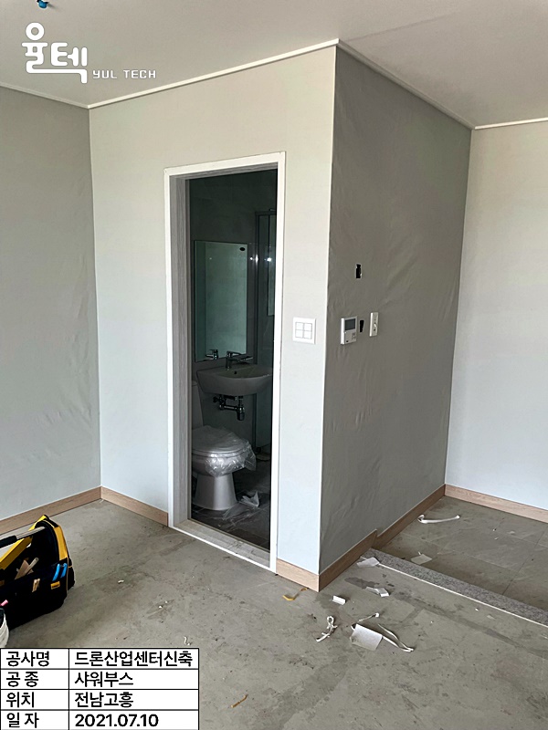 1 | 현장명 | 전남 고흥 드론산업센터 신축공사현장 샤워실 샤워부스 설치 시공 |