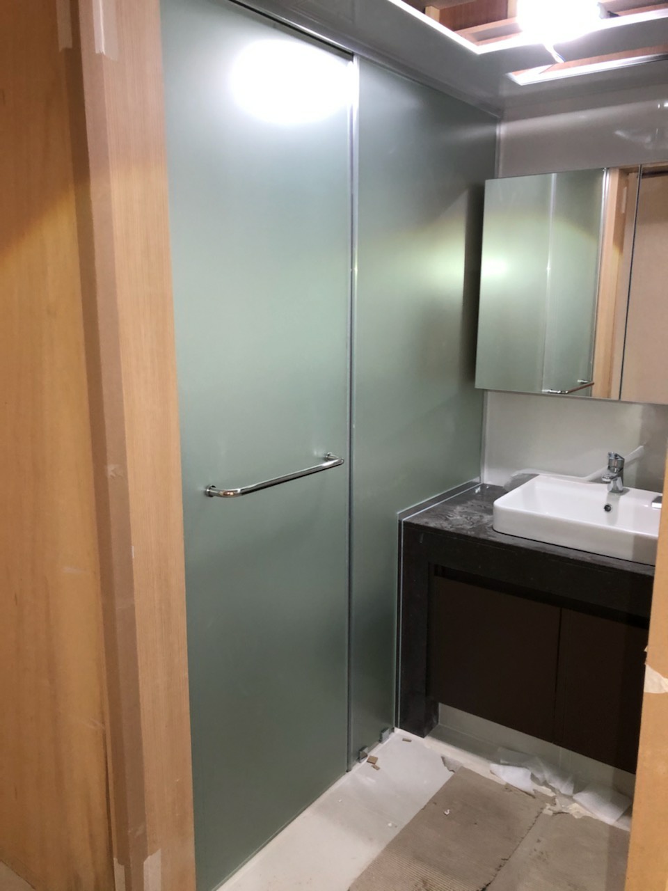 | 특징 | 젠다이 일자 샤워부스형의 전실도어로 전체 에칭과 천장부터 바닥까지 전체 차폐 시공으로 공간을 분리 |