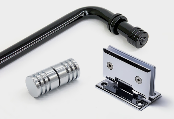 | 욕실 유리와 함께 알루미늄 바(Bar), 경첩, 프로파일 날개, 손잡이 등 샤워부스와 욕실에 관련된 다양한 부속자재를 공급 |