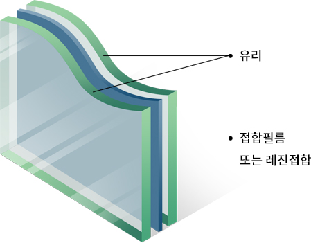 ㆍ유리와 유리 사이에 접합필름을 삽입시켜, 진공상태에서 열을 가해 녹여 제조된 유리